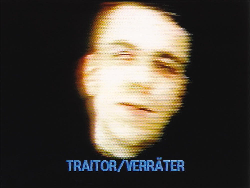 Der Raum, der der Akademie gewidmet war, zeigte in schweren Mahagonirahmen hochvergrößerte Fotografien unserer Professoren Peter Dreher und Wilhelm Loth. Beide hatten uns für die Arbeit Automatenfotos überlassen. Die monumentale Skalierung verwandelt das beiläufige Dokument in ein nahezu kanonisches Porträt, das die Aura des „Meisters“ heraufzubeschwören scheint und zugleich seine Hybris sichtbar macht.