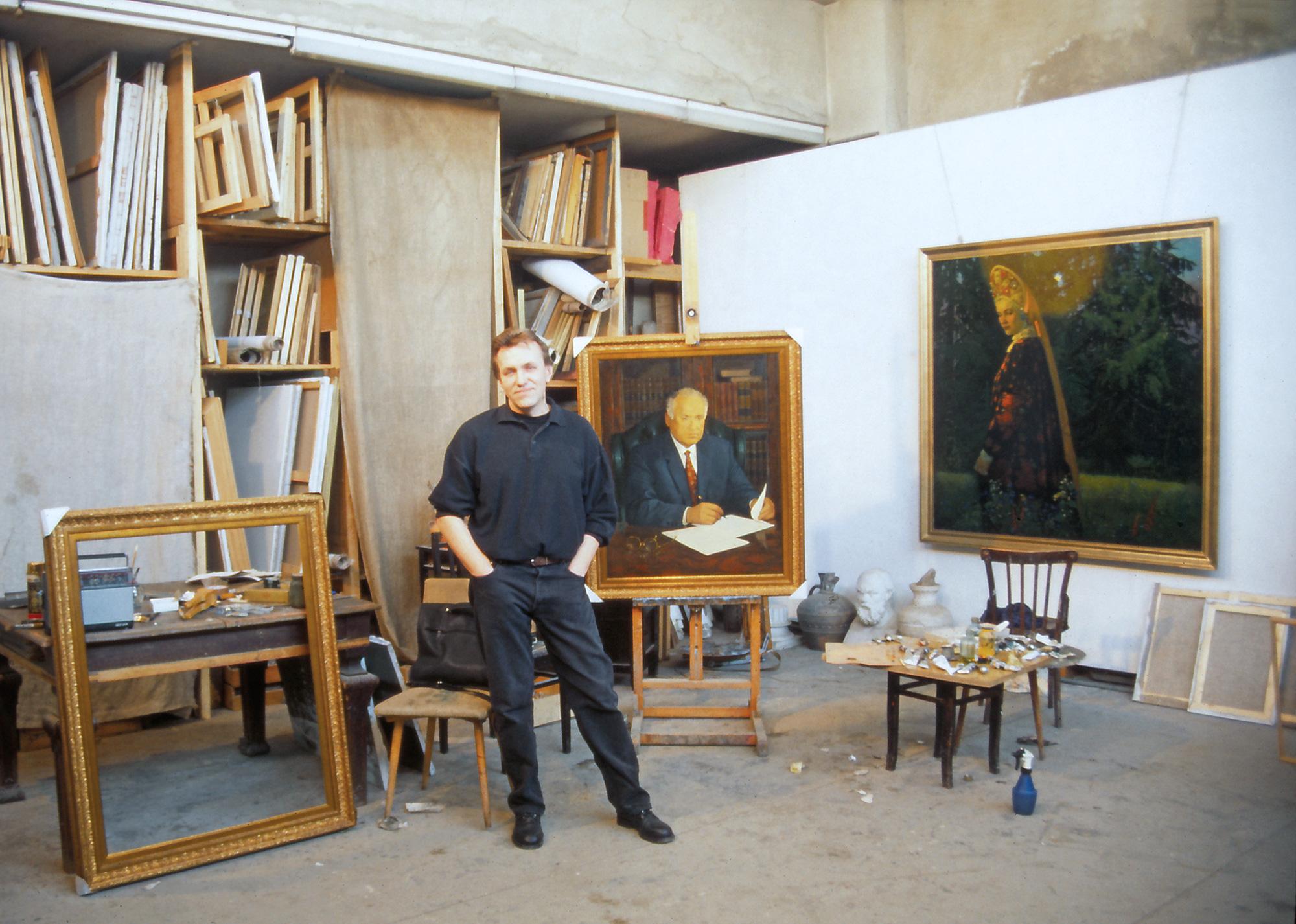1993 brachte uns Katrin Becker nach Moskau, wo sie unsere Einzelausstellung im CAC Contemporary Art Center Moscow bei Victor Misiano kuratierte. Gezeigt wurden unsere KUNSTKONSUMENTEN PROFILE – Gemälde nach Vorlagen sozialistischer Fotobücher, die nach dem Mauerfall in Berlin massenhaft auf dem Müll gelandet waren.