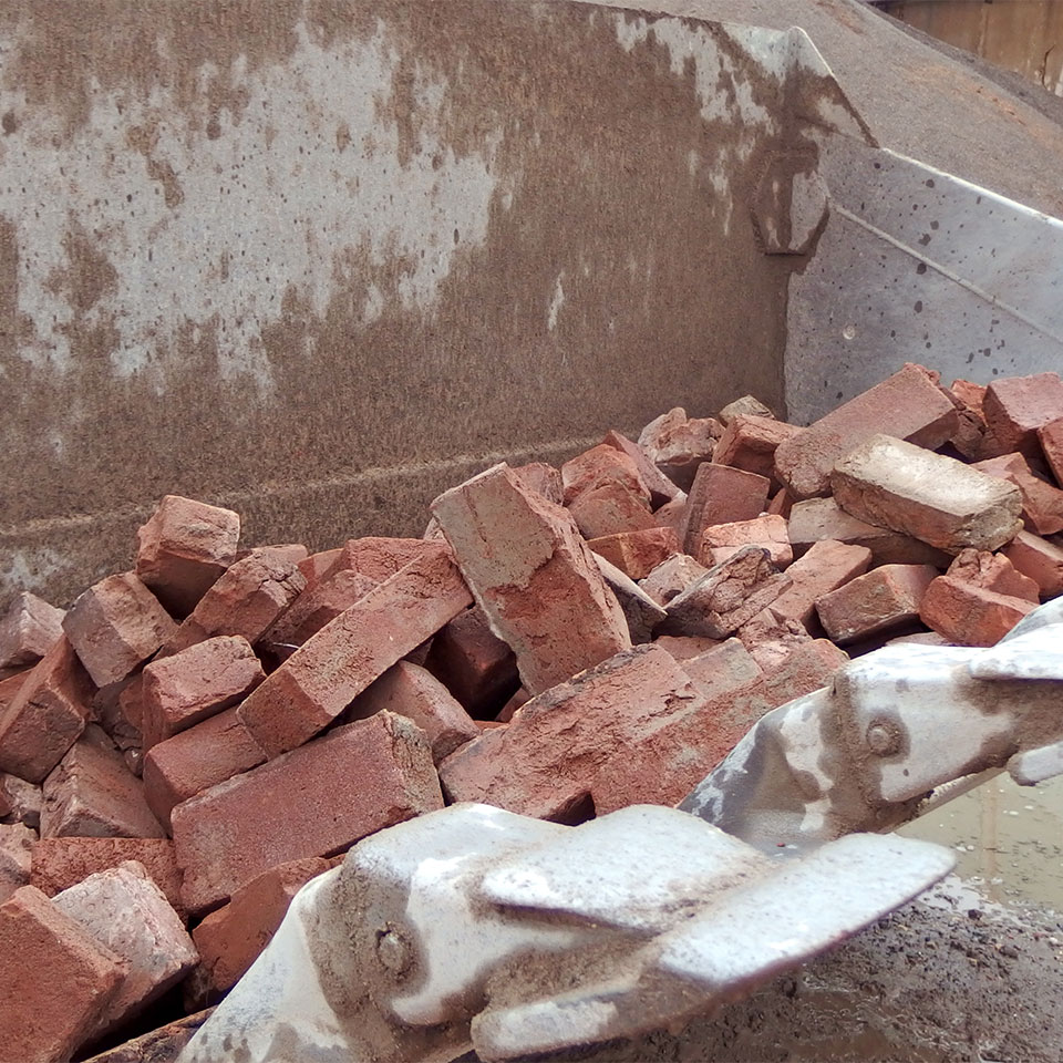 In Trier kann nicht tief gegraben werden, da dicht unter der Oberfläche historische Relikte und Gräber liegen. Daher wurde für das Polizeipräsidium kein Neubau geplant, sondern ein Umbau des Vorhandenen. Am Standort wurde das ehemalige Hauptpostamt teilweise abgetragen und umgebaut. Den Bauschutt verwendeten wir als Zuschlagstoff für unsere Arbeit „Polis“.